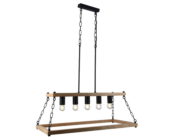 LAMP. COLGAR 5xE27-40W NEGRO MATE / MADERA