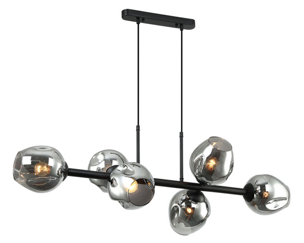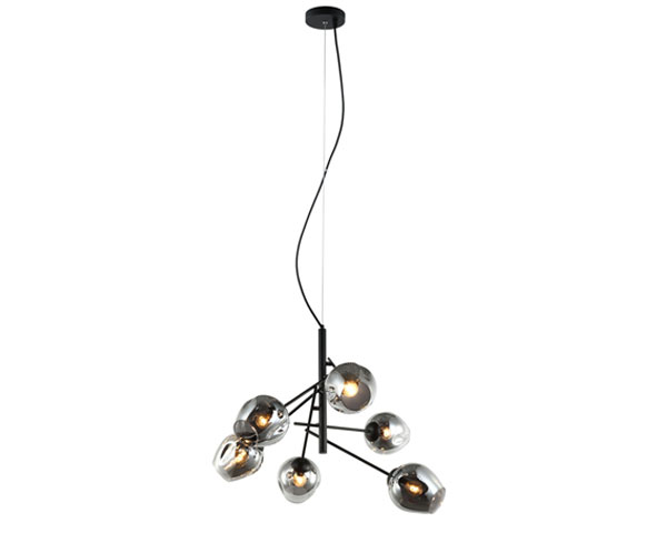 COLGANTE6 LUCES E27 40W TULIPAS VIDRIO AHUMADO