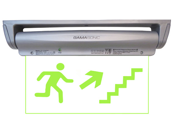 SEÑALETICA DE EMERGENCIA LETRAS VERDES DISTINTOS MONTAJES HOMBRE FLECHA ESCALERA SUBIDA - PE 5/23