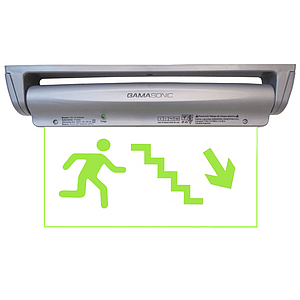 SEÑALÉTICA DE EMERGENCIA HOMBRE FLECHA ESCALERA BAJADA"