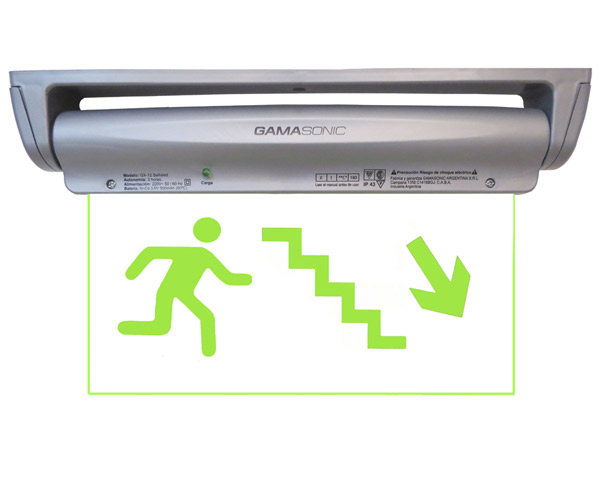 SEÑALETICA DE EMERGENCIA LETRAS VERDES DISTINTOS MONTAJES HOMBRE FLECHA ESCALERA BAJADA - PE 5/23